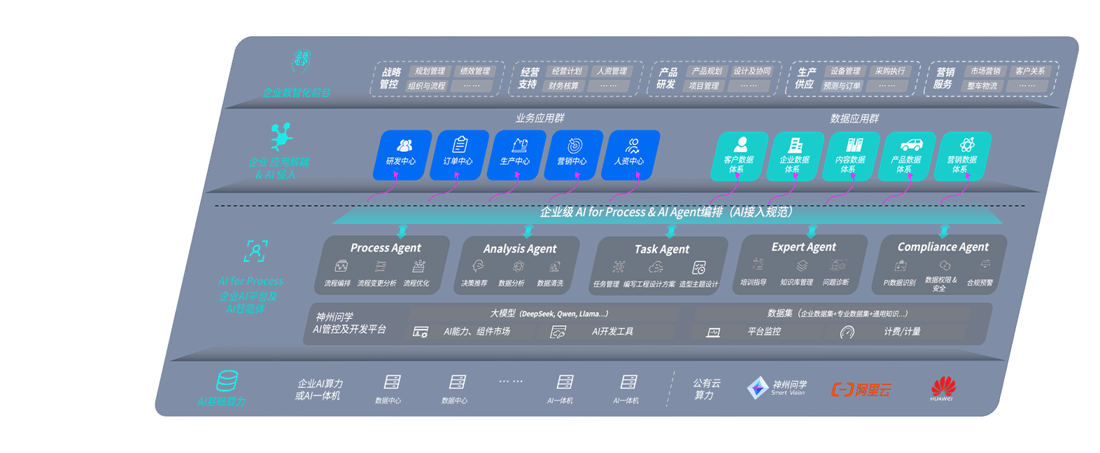 端到端的一站式AI工作空间深度融合了从企业战略规划到日常经营的全流程业务板块,,定向解决车企内部领域多、、、部门多、、、链条长、、、、场景碎片化等难题,,,,支持车企快速构建以AI为核心的生产力写作体系,,,实现任务执行与AI能力的无缝集成与交互